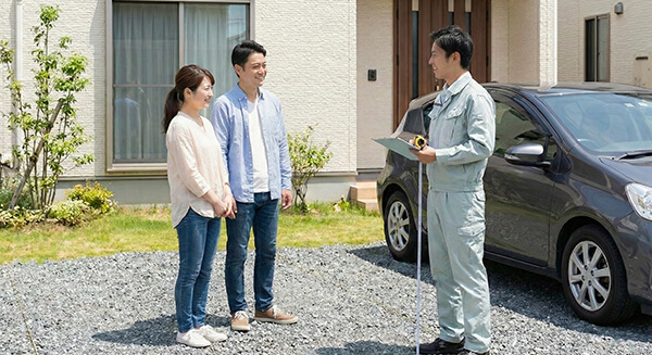 スタッフが実際に現地にお伺いし、敷地や周辺環境を確認します。