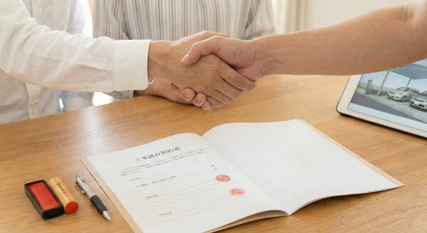 施工開始の日程や詳細についても、改めて確認いたします。契約手付金として半金のお支払いいただきます。